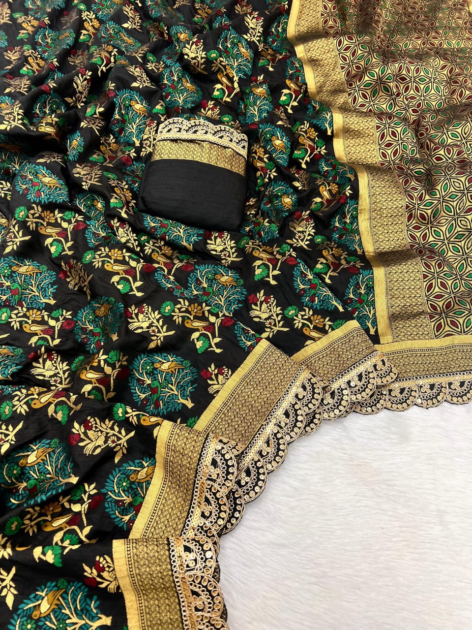 Adorn yourself in this beautiful and charming pure khaddi georgette designer saree in sabyasachi scallop intricate borders