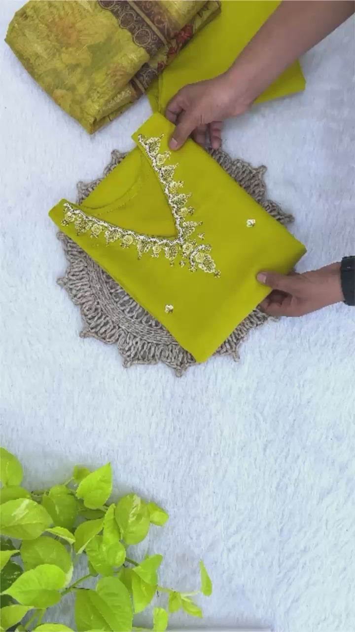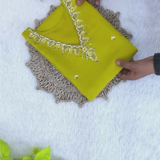 FABRIC-Kurti Premium Roman Silk Soft Fabric With Handwork Neck , Sleeve 3/4 With Fancy Lece